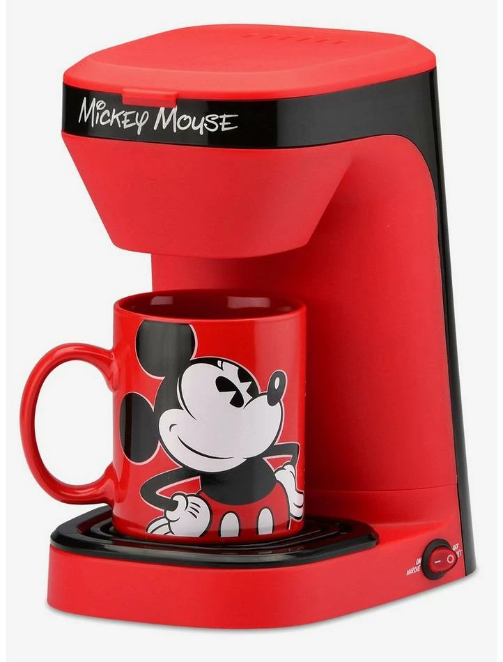 Make mornings exciting with this Mickey Mouse 1-Cup Coffee Maker. Use your favorite grounds to brew a single cup of coffee whenever you need it. This 1-cup drip coffee maker features a permanent, washable filter basket and a removable drip tray for simple cleanup. Includes a 12 ounce ceramic mug featuring Mickey Mouse.